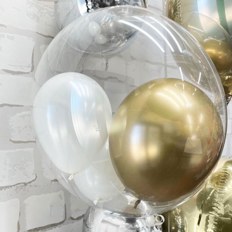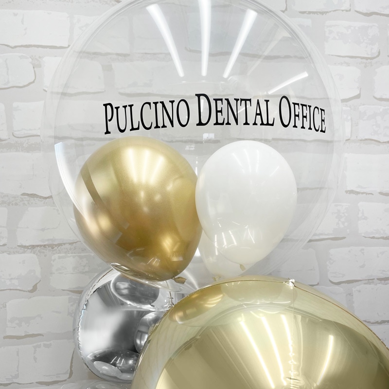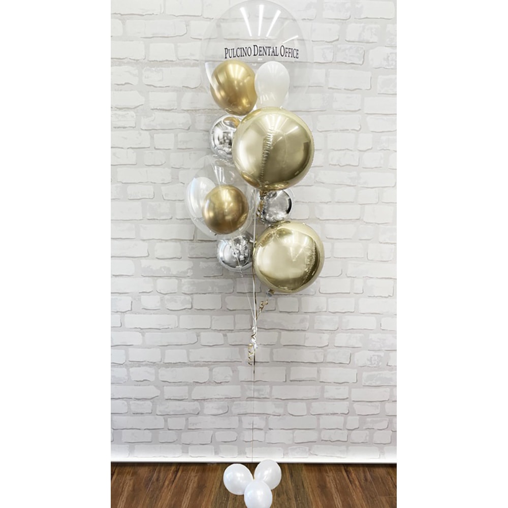 トップの透明バルーンには、オリジナルシールをお付けいたします。
