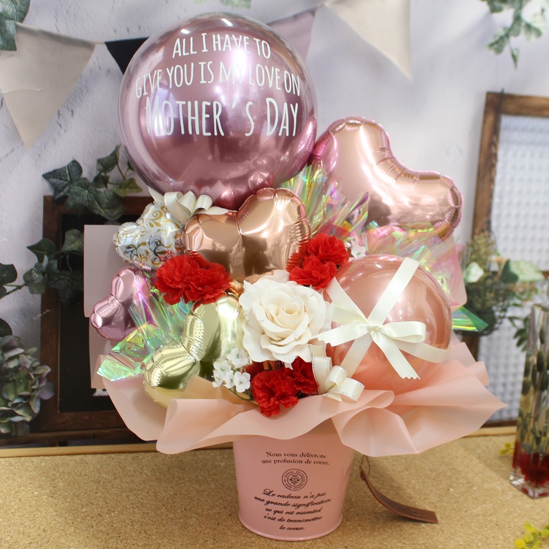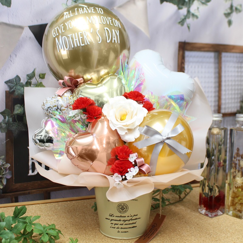 ブリキポットがオシャレな豪華なギフトです。バルーンも、愛情も、たっぷり詰まった特別なギフトです。普段口に出して言えない言葉をバルーンに託してみてはいかがですか??