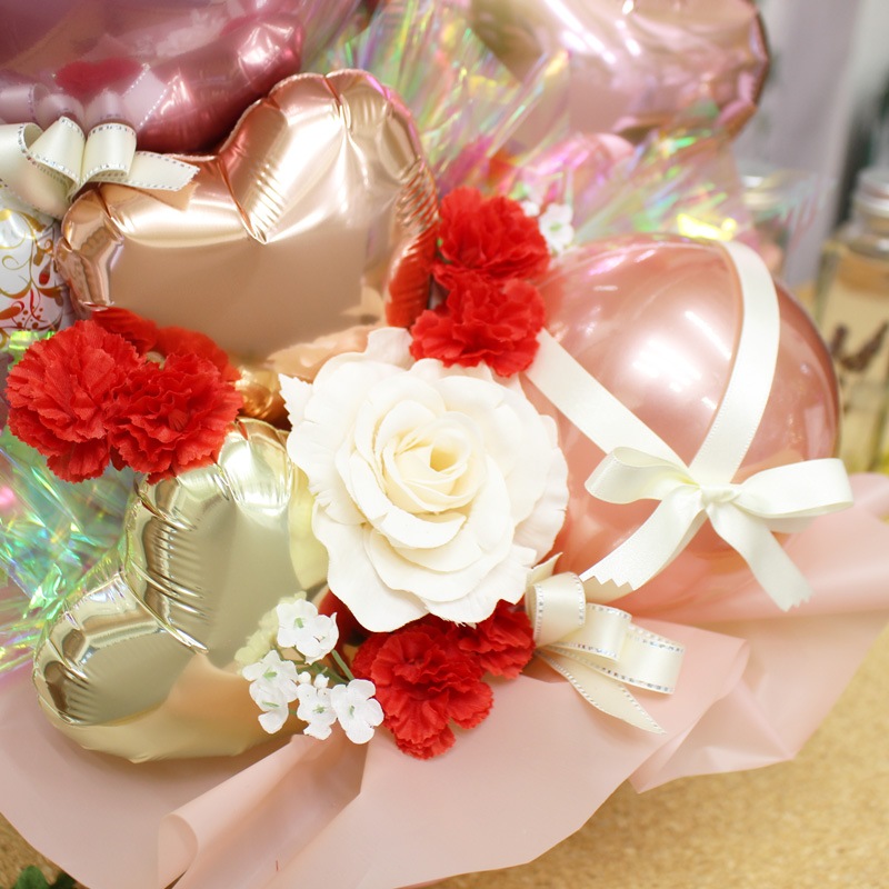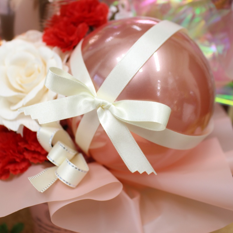 時間の経過とともに少しずつ空気が抜けてきますが、ラッピングしたまま直射日光を避けて飾っていただけますと1ヶ月~数ヶ月もちますよ!