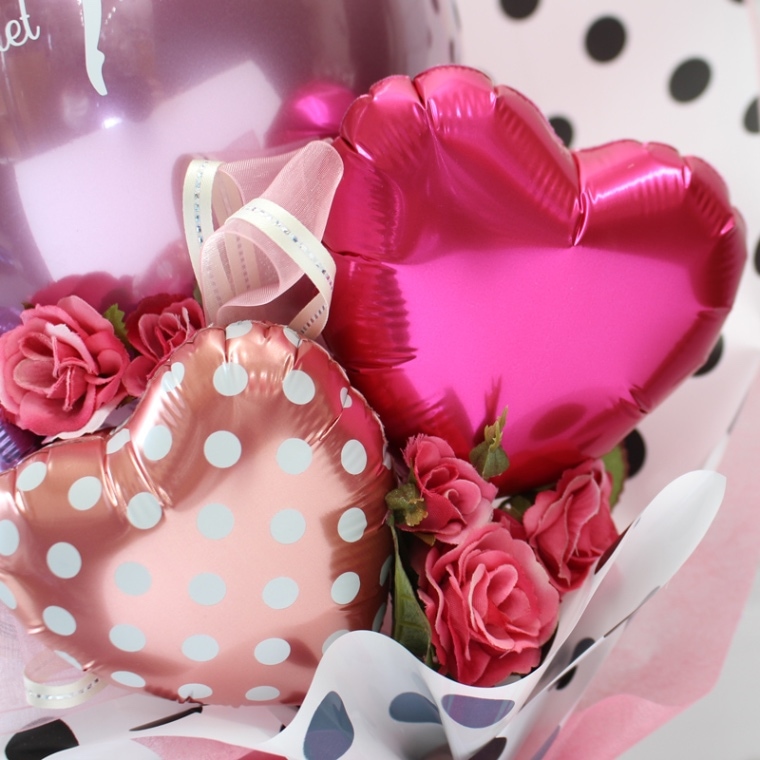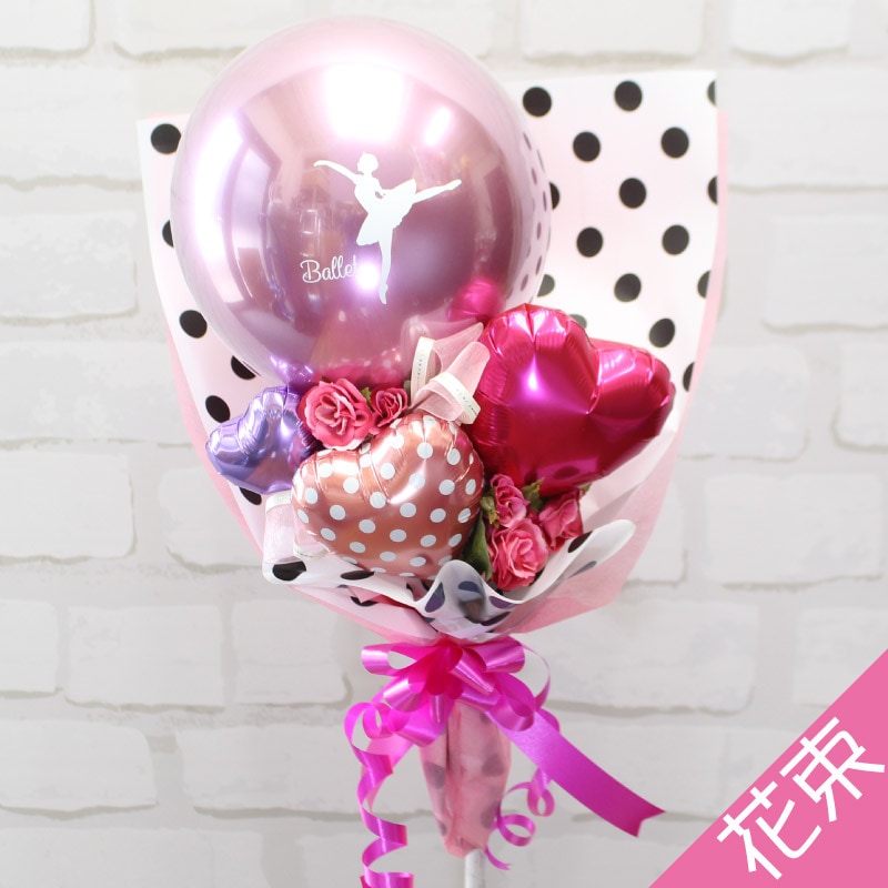 抜群の光沢感を誇るゴム風船「クオラテックス クロームバルーン」を使用しましたクロームカラーの綺麗なツヤと発色は写真では伝えきれません!ボリューム感のあるバルーン花束♪バレエの発表会のプレゼントにどうぞ!