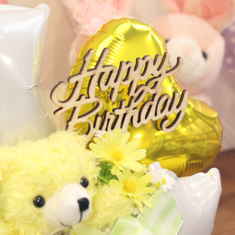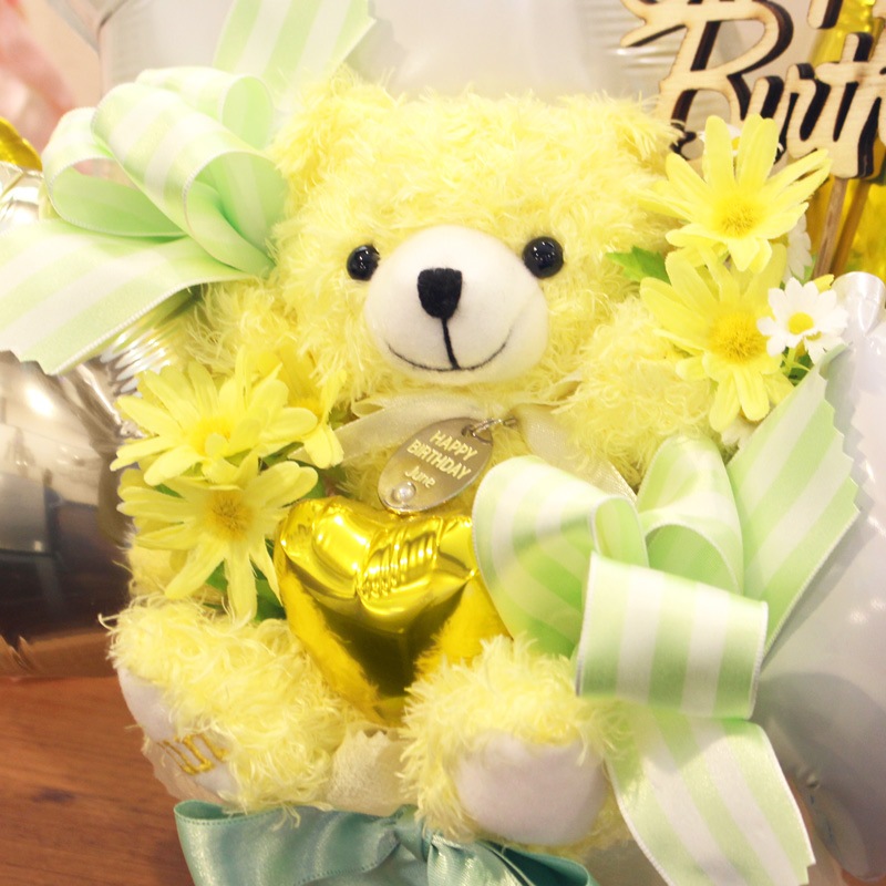 誕生月カラーのぬいぐるみを使ったバースデーギフト!クマのペンダントには「Happy Birthday」の文字と誕生石カラーのラインストーンがついています♡