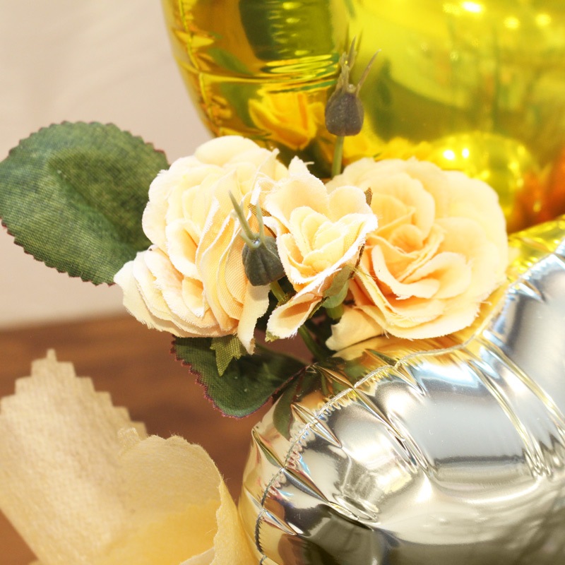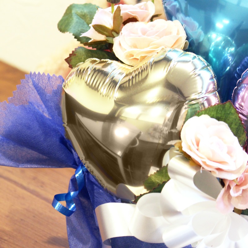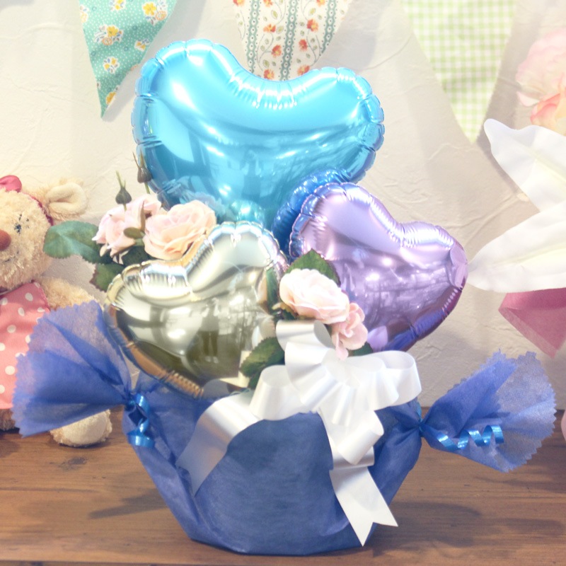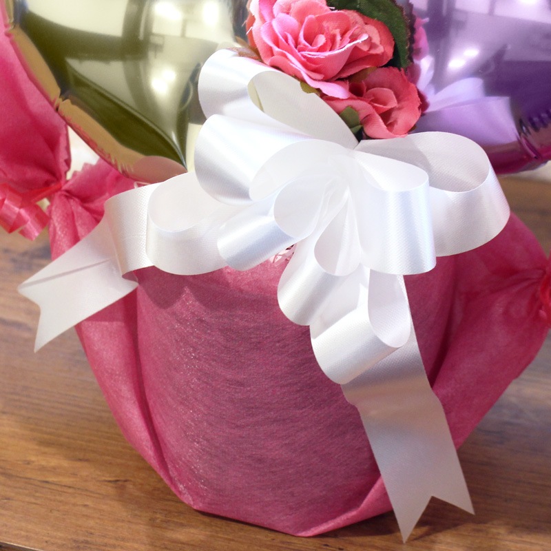 時間の経過とともに少しずつ空気が抜けてきますが、ラッピングしたまま直射日光を避けて飾っていただけますと1ヶ月~数ヶ月もちますよ!