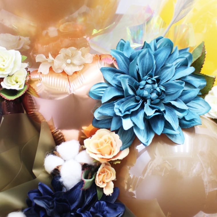 使用しているお花は一部商品を除き全て造花です。季節により、予告なく色・種類・形が変更になる場合があります。写真と同じお花がご用意できない場合は、出来る限りイメージと合うように似た造花を使用して制作いたします。予めご了承ください。