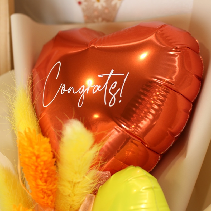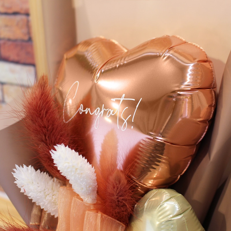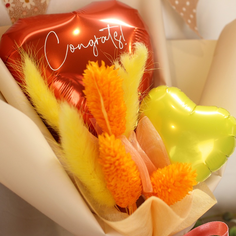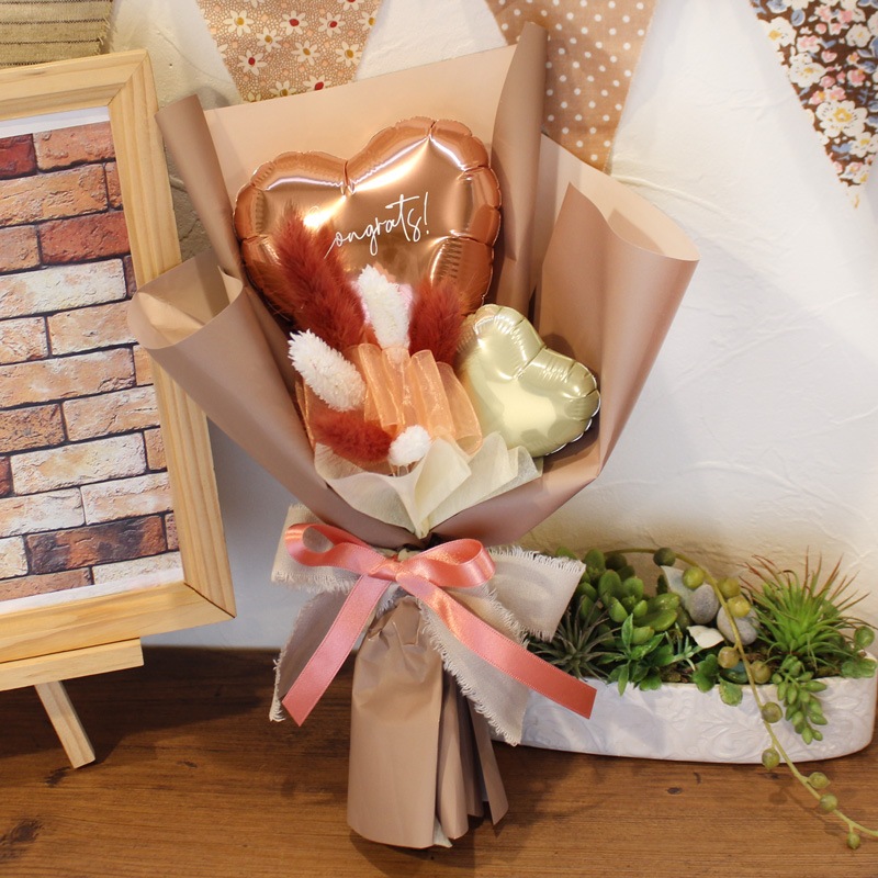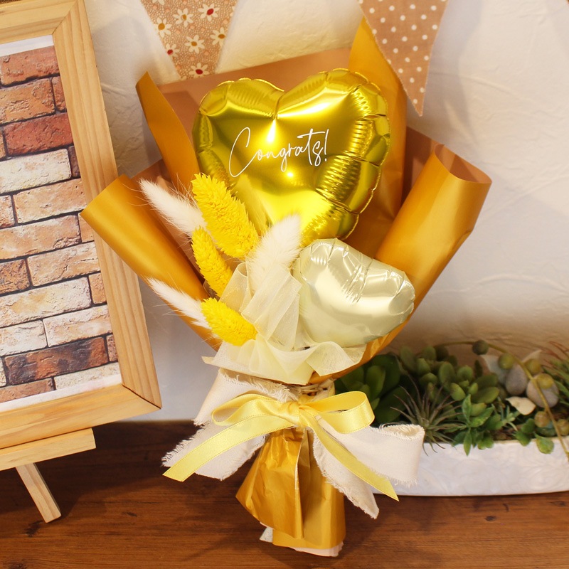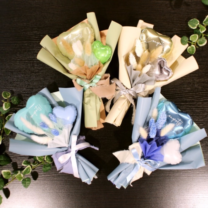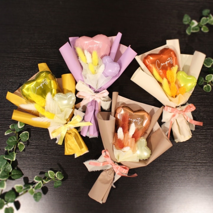 空気で膨らましたバルーンをスティックに付けて花束のようにまとめた商品です。
